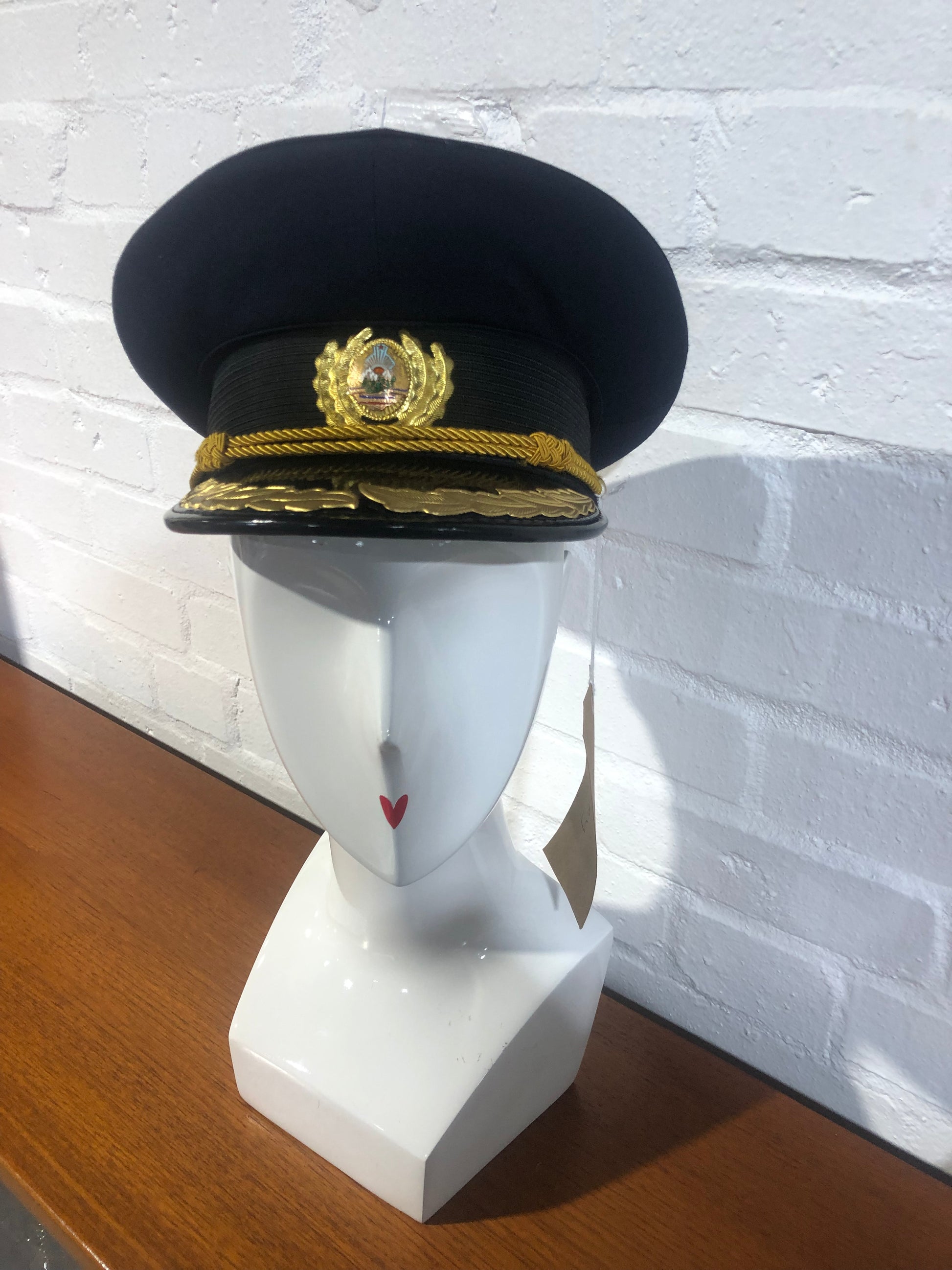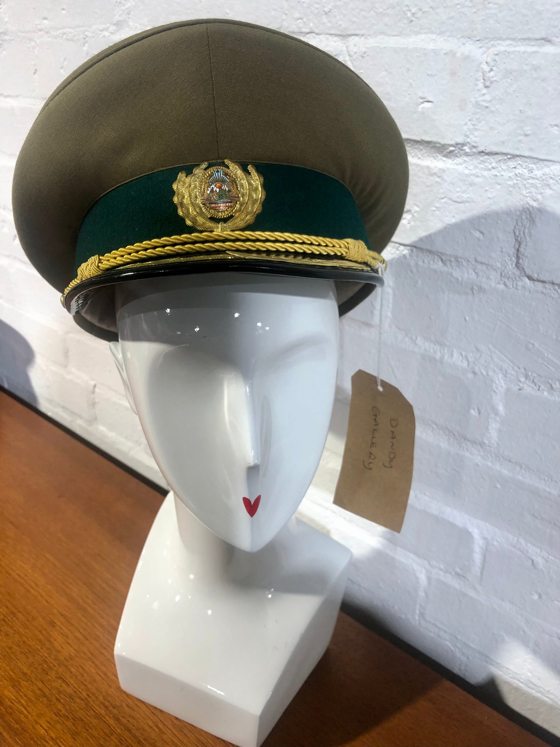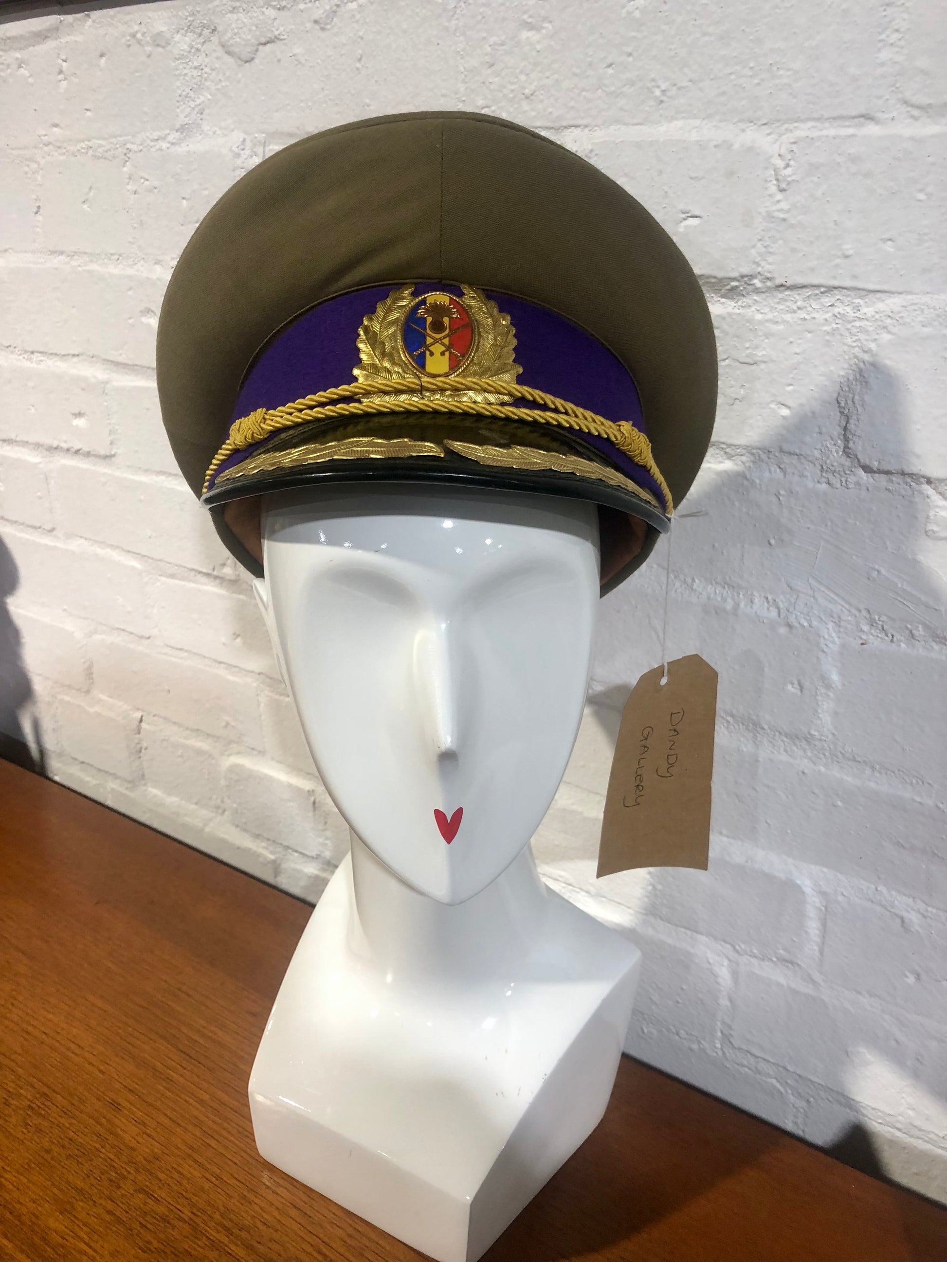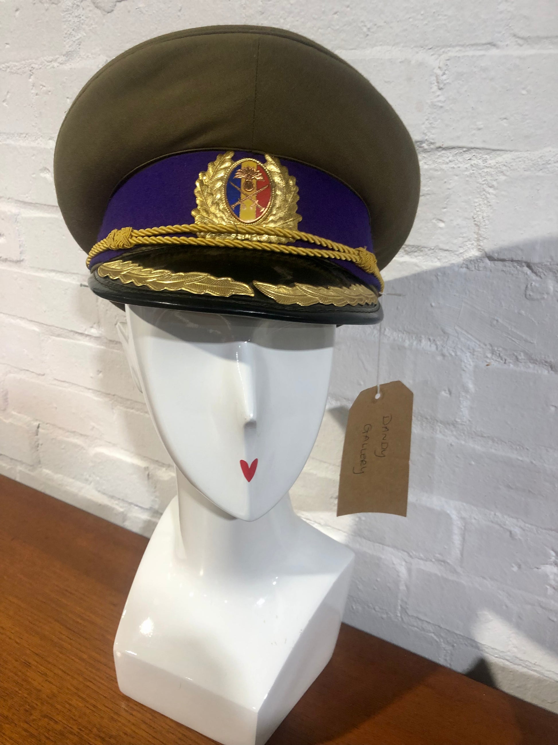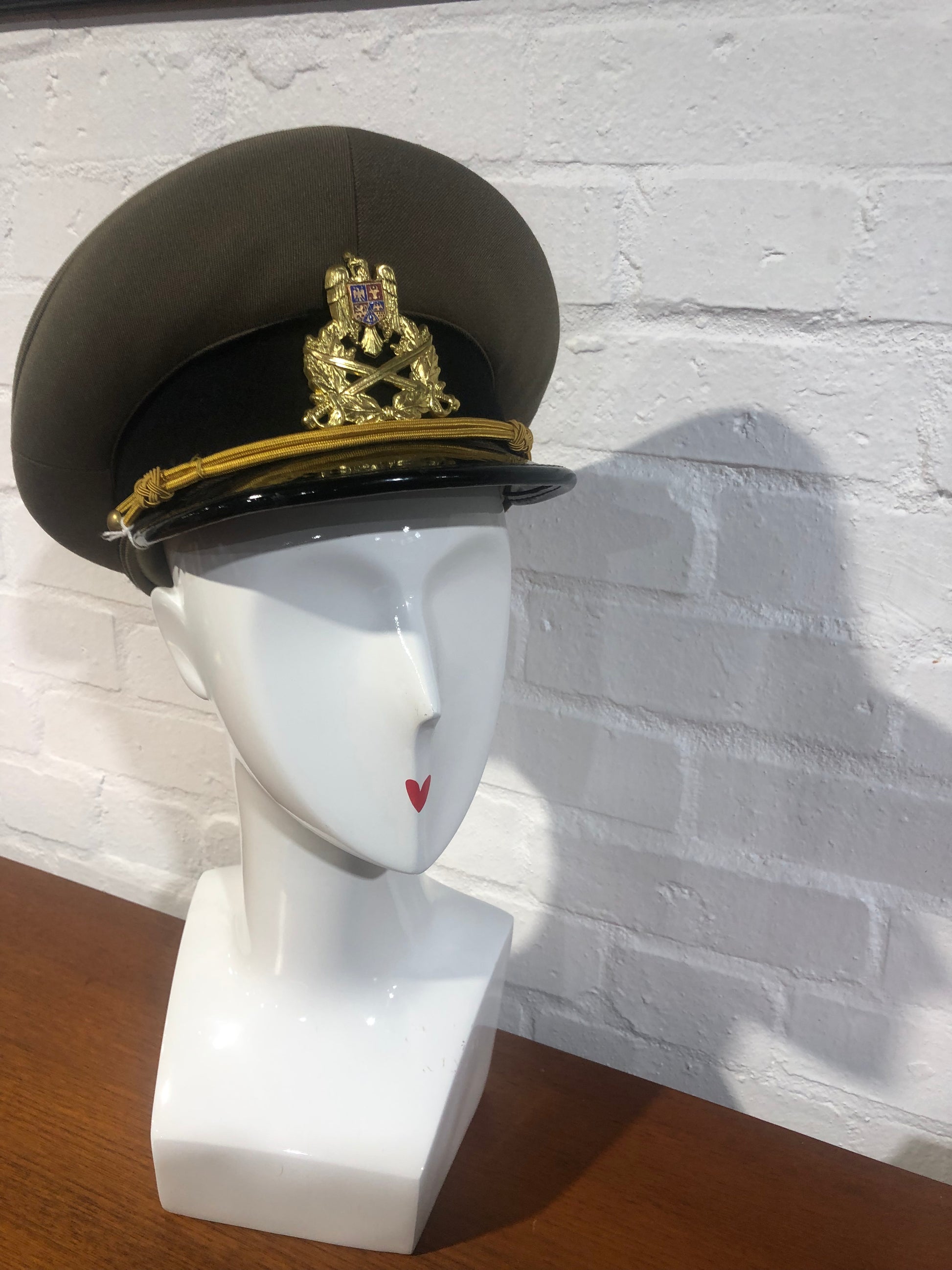 A selection of officiers hats (caps) form communist era Romanin uniforms.