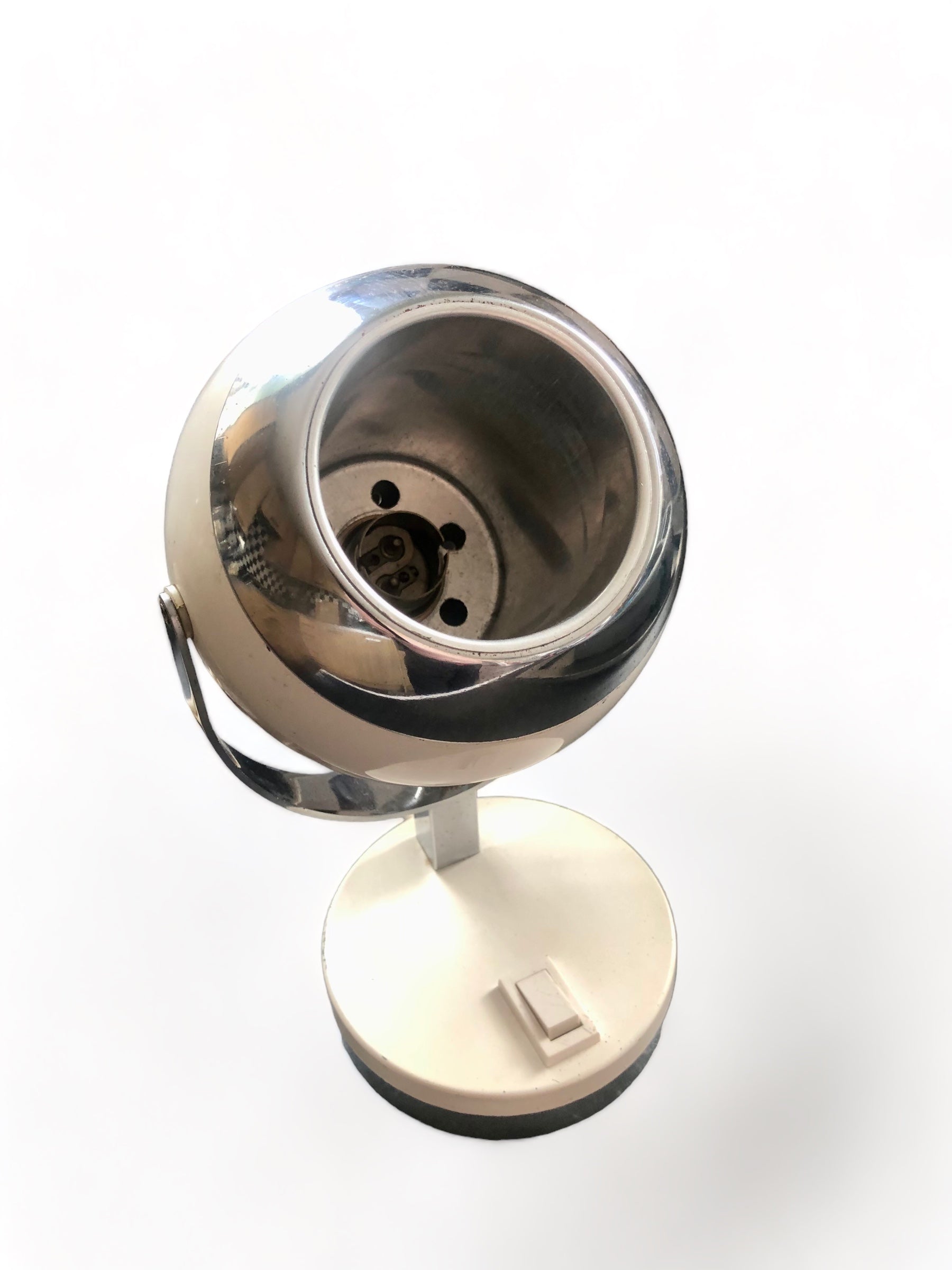 A retro Louis Poulsen "Eye Ball" sconce in white.