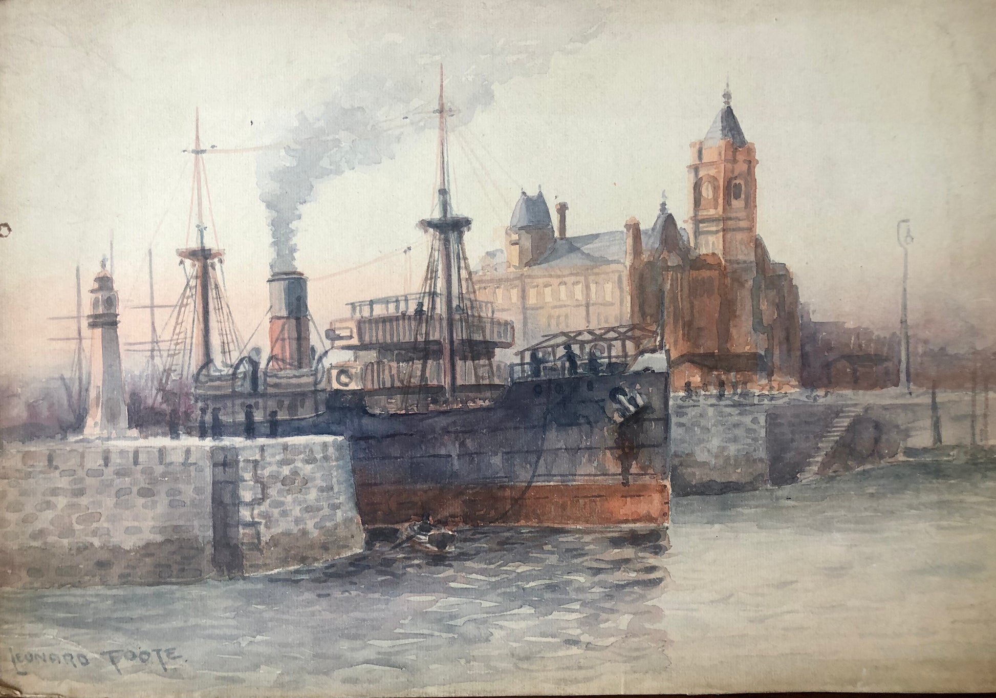 Original Water colour of Cardiff Docks by leonard Foote