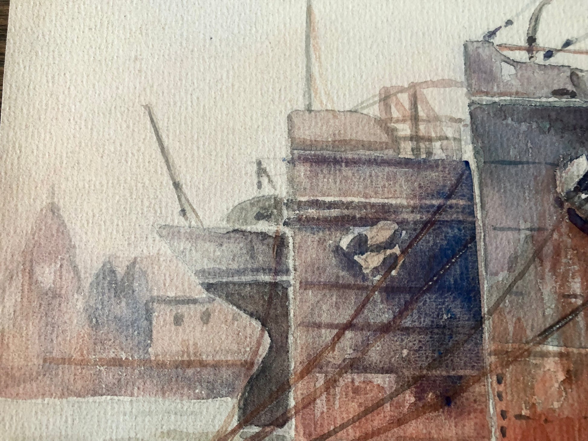 This water colour shows the size and complexity of a busy port.