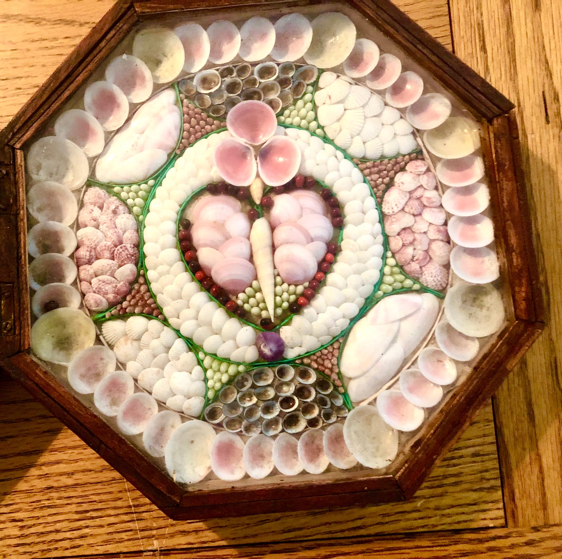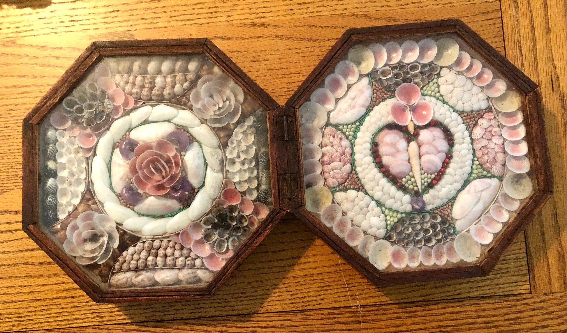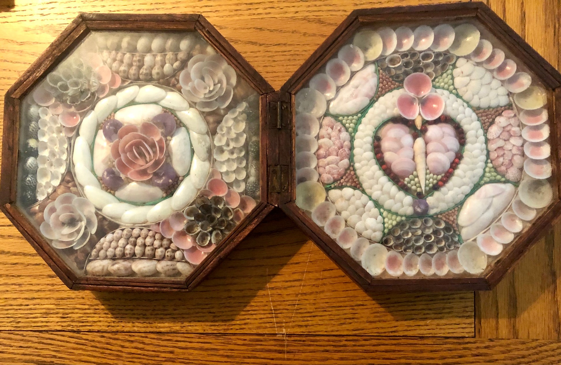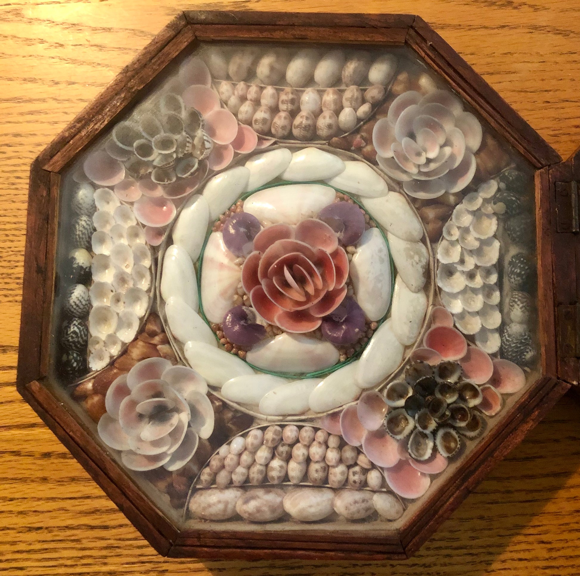 Sailor’s valentines were gifts from sailors to their sweethearts that often included affectionate sayings with their designs. For many years, collectors and scholars thought that sailors made these decorative objects during their long voyages at sea. While sailors made items such as scrimshaw and woolworks aboard their vessels, they definitely did not make valentines on board ship.