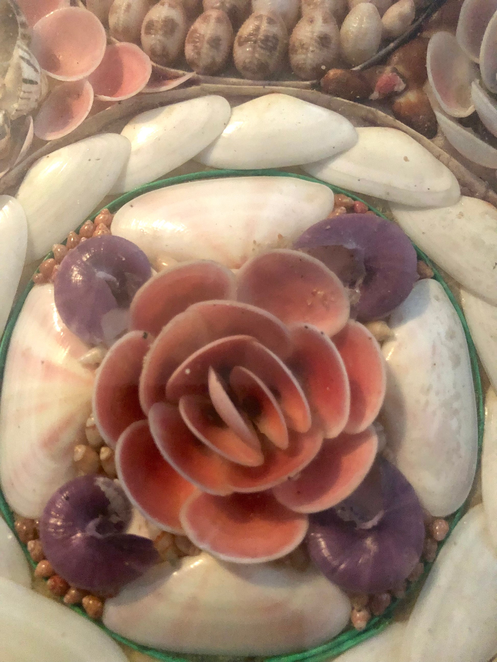 They would have had to have access to the variety of shells, paper, glass and wood necessary and they would have had to have a designated space where things would remain in an unfinished state while being worked on intermittently. Obviously, the movement of the ship on the sea would not have afforded a reliable workshop and it was doubtful that the ships’ captains would have allowed a “valentine room” on bard their ships. Research has shown that valentines were specifically made for the souvenir trade, mainly in the West Indies.