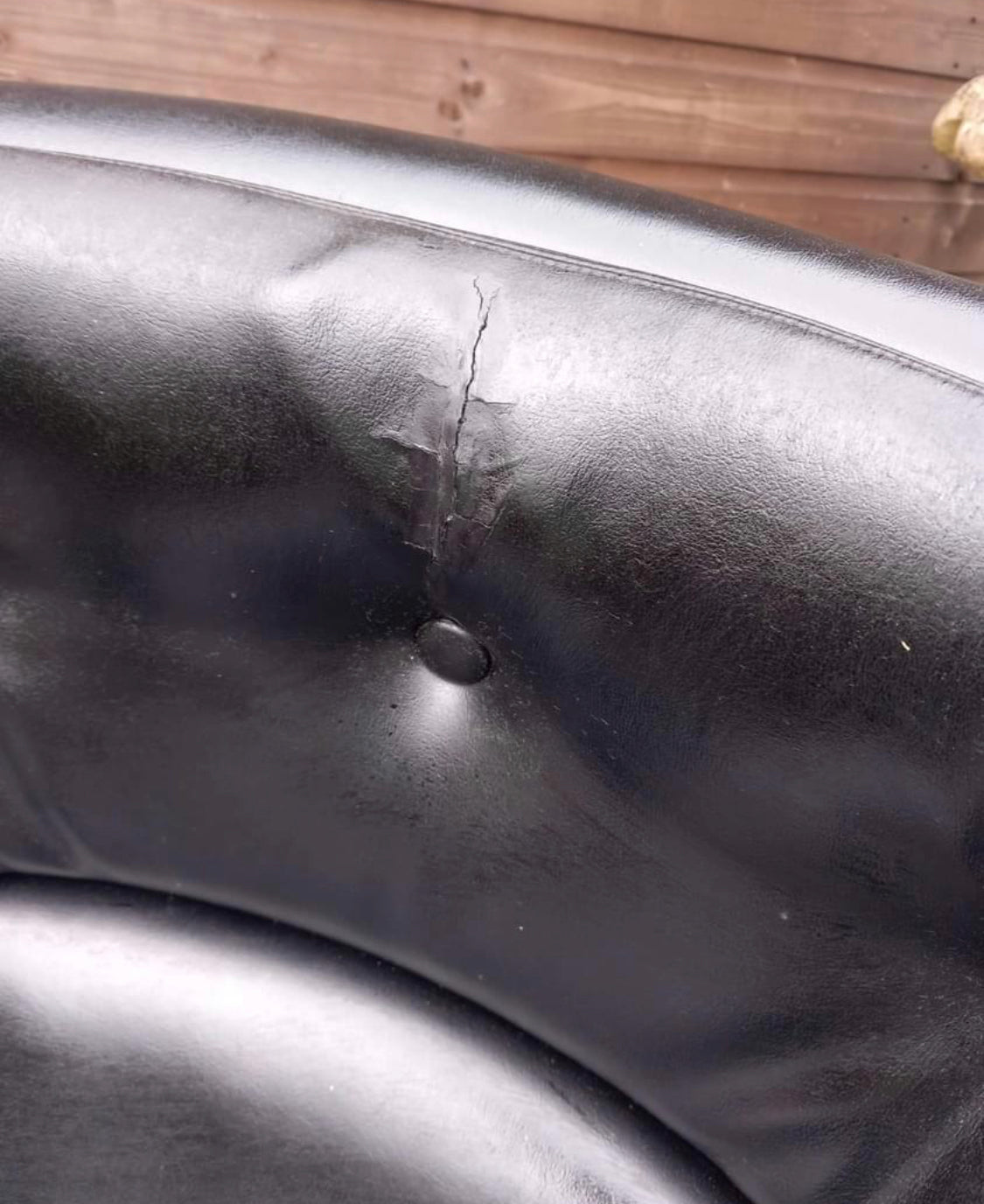 We have a James Bond style Egg chair in genuine fake black pleather.