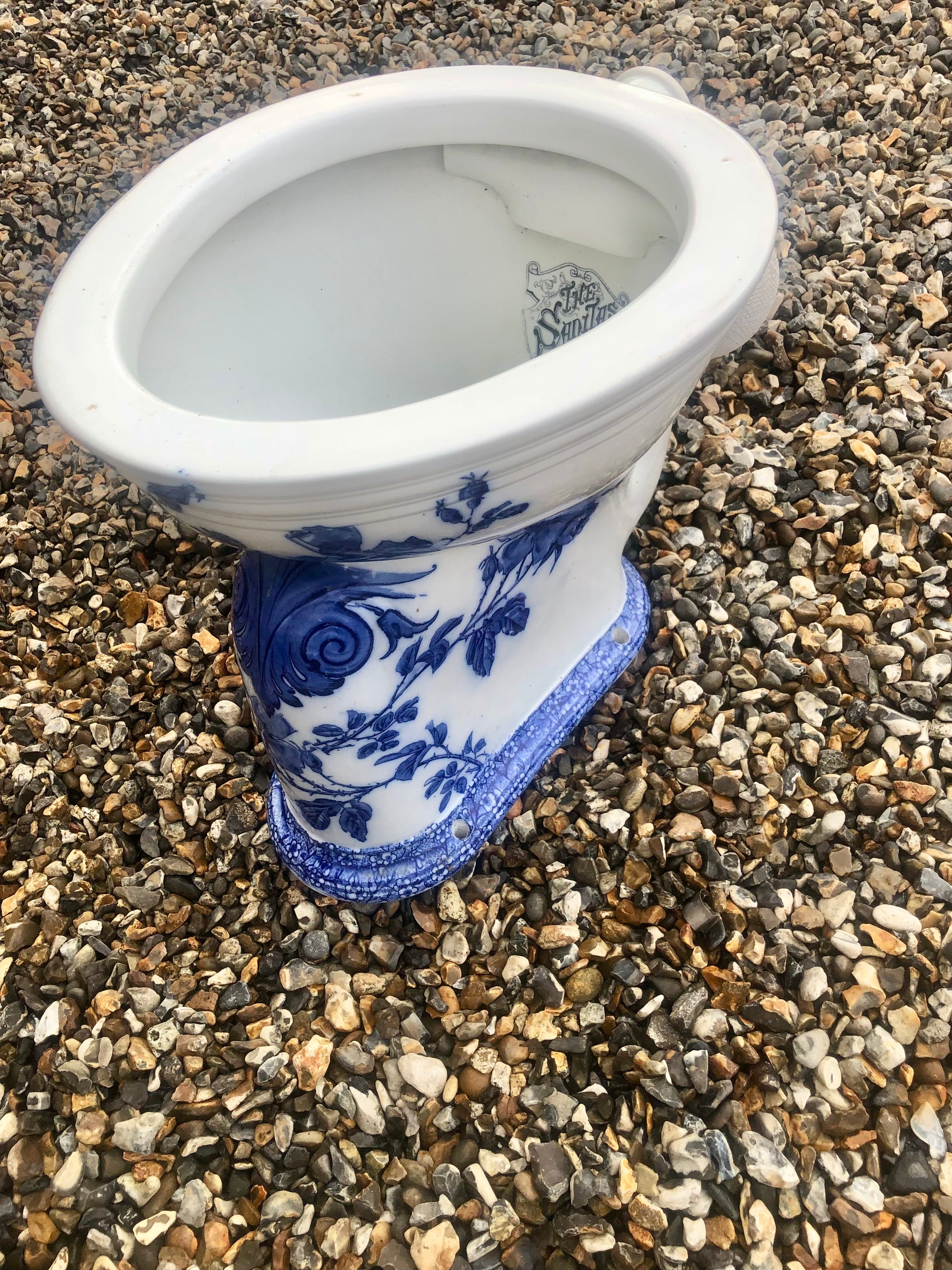 Decorative Blue and White Victorian water closet.